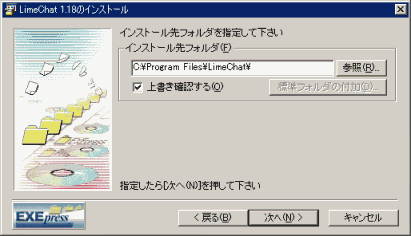 インストール先を選択します。通常はこのままで良いと思います。